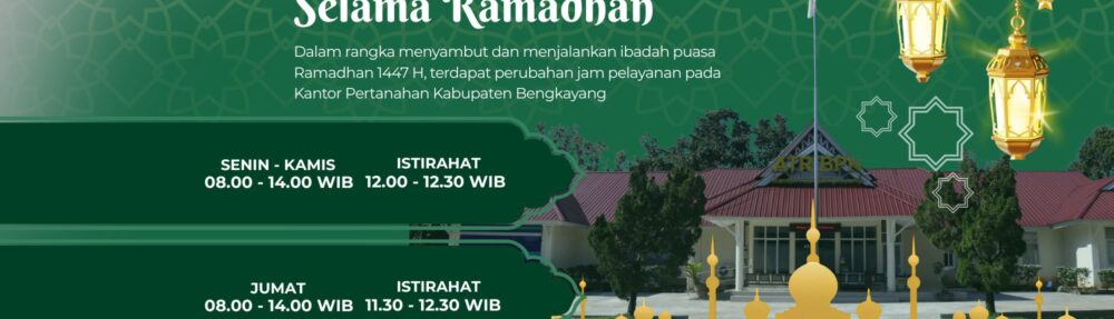 Bengkayang – Dalam rangka mendukung pelaksanaan ibadah puasa pada bulan suci Ramadan 1447 Hijriah, Kantor Pertanahan Kabupaten Bengkayang melakukan penyesuaian jam pelayanan kepada masyarakat. Penyesuaian